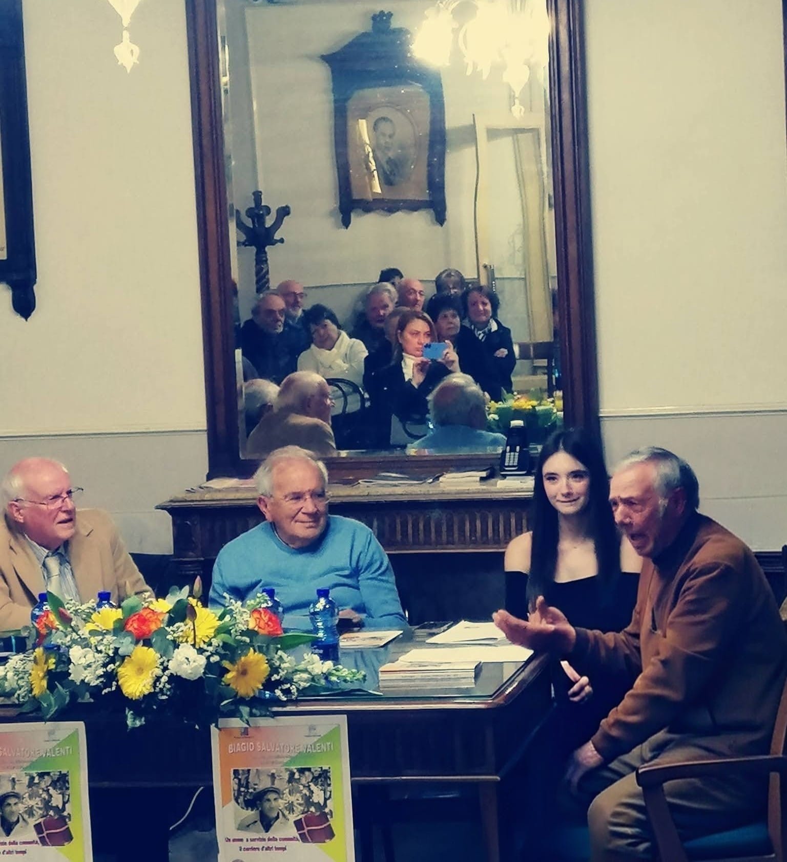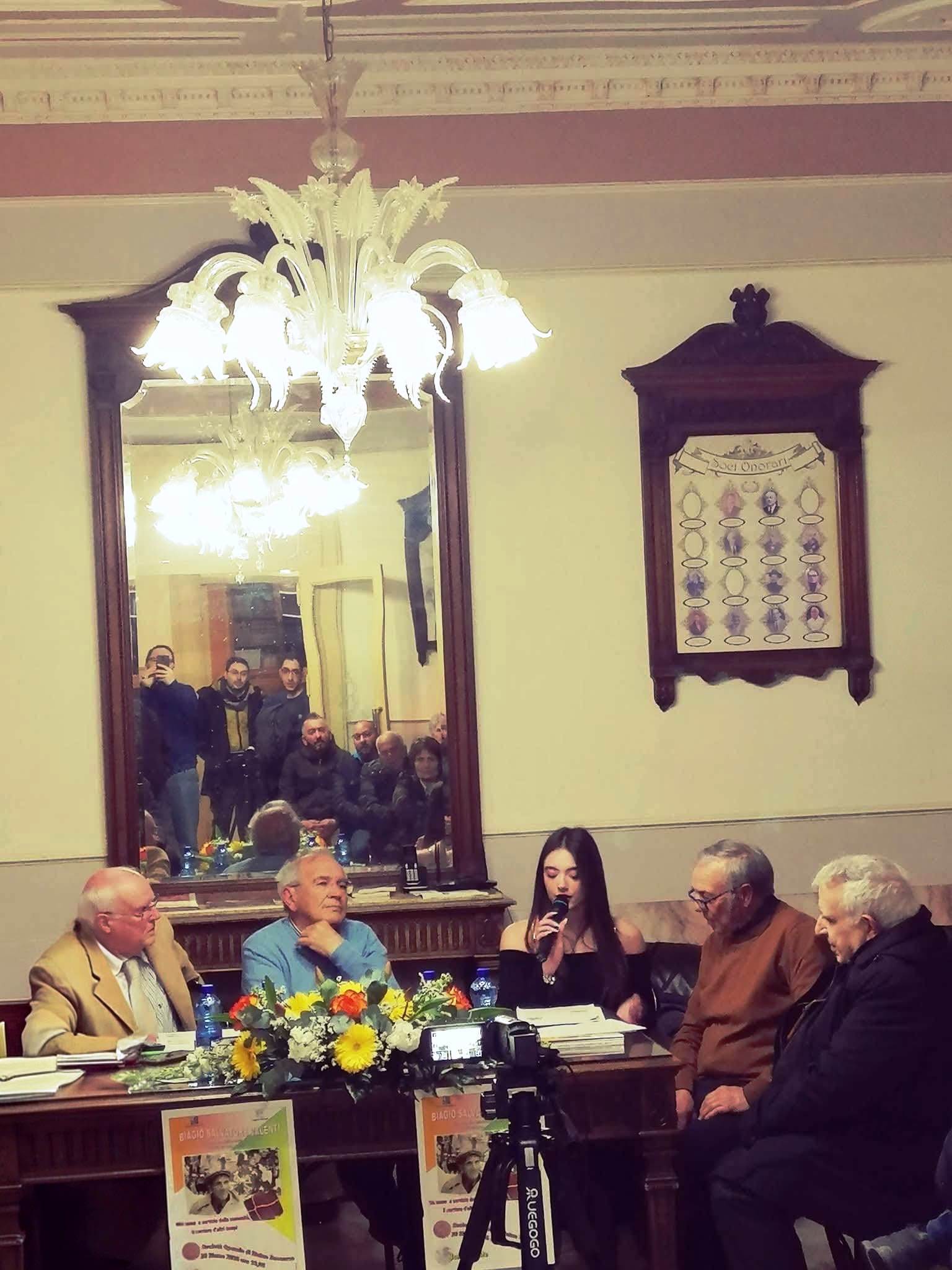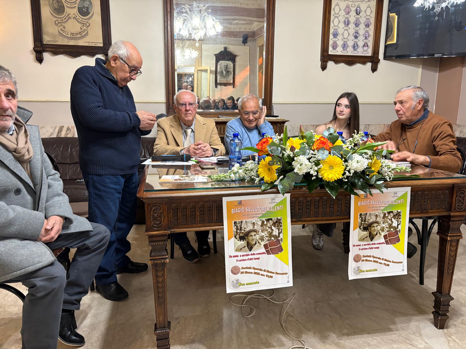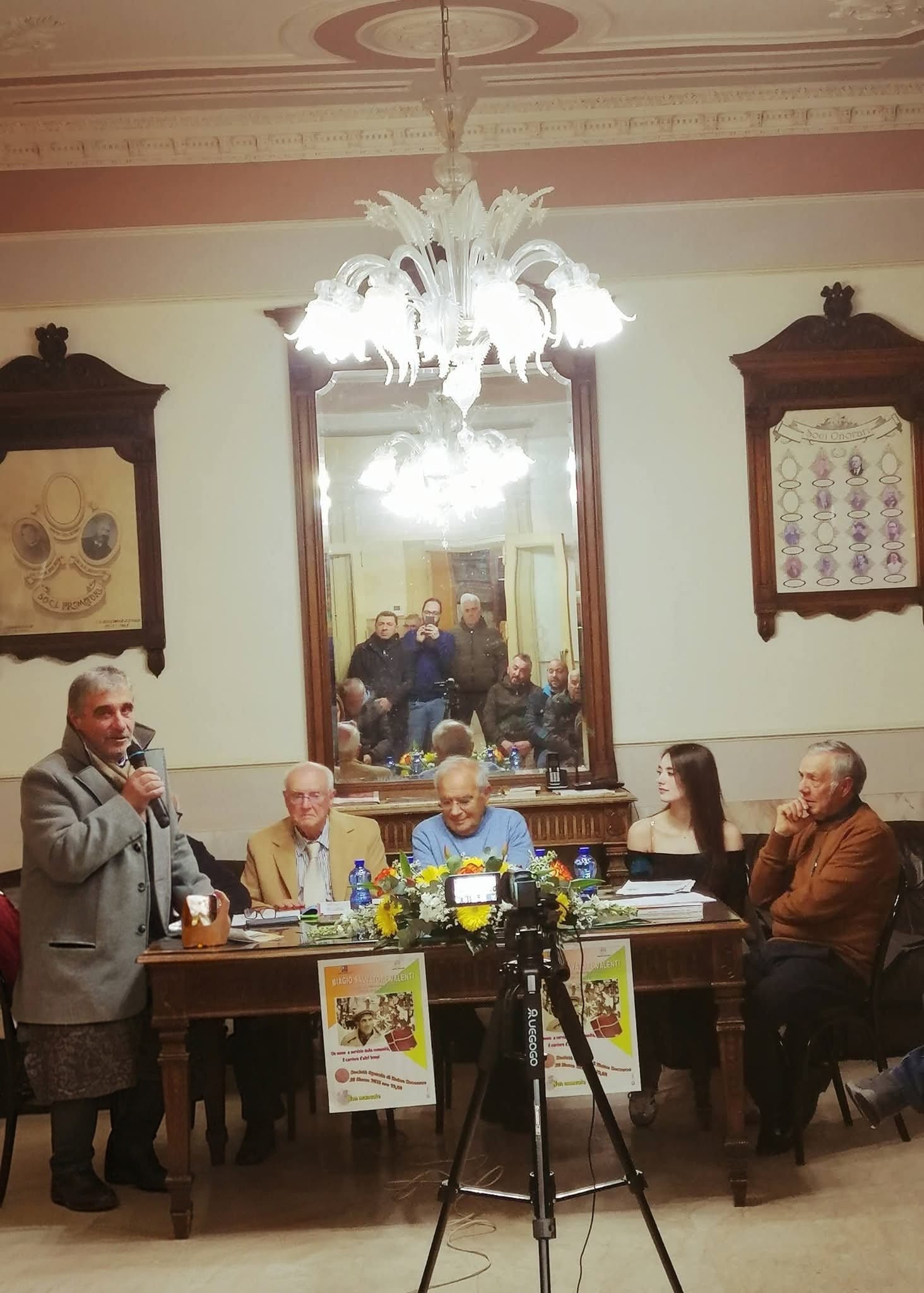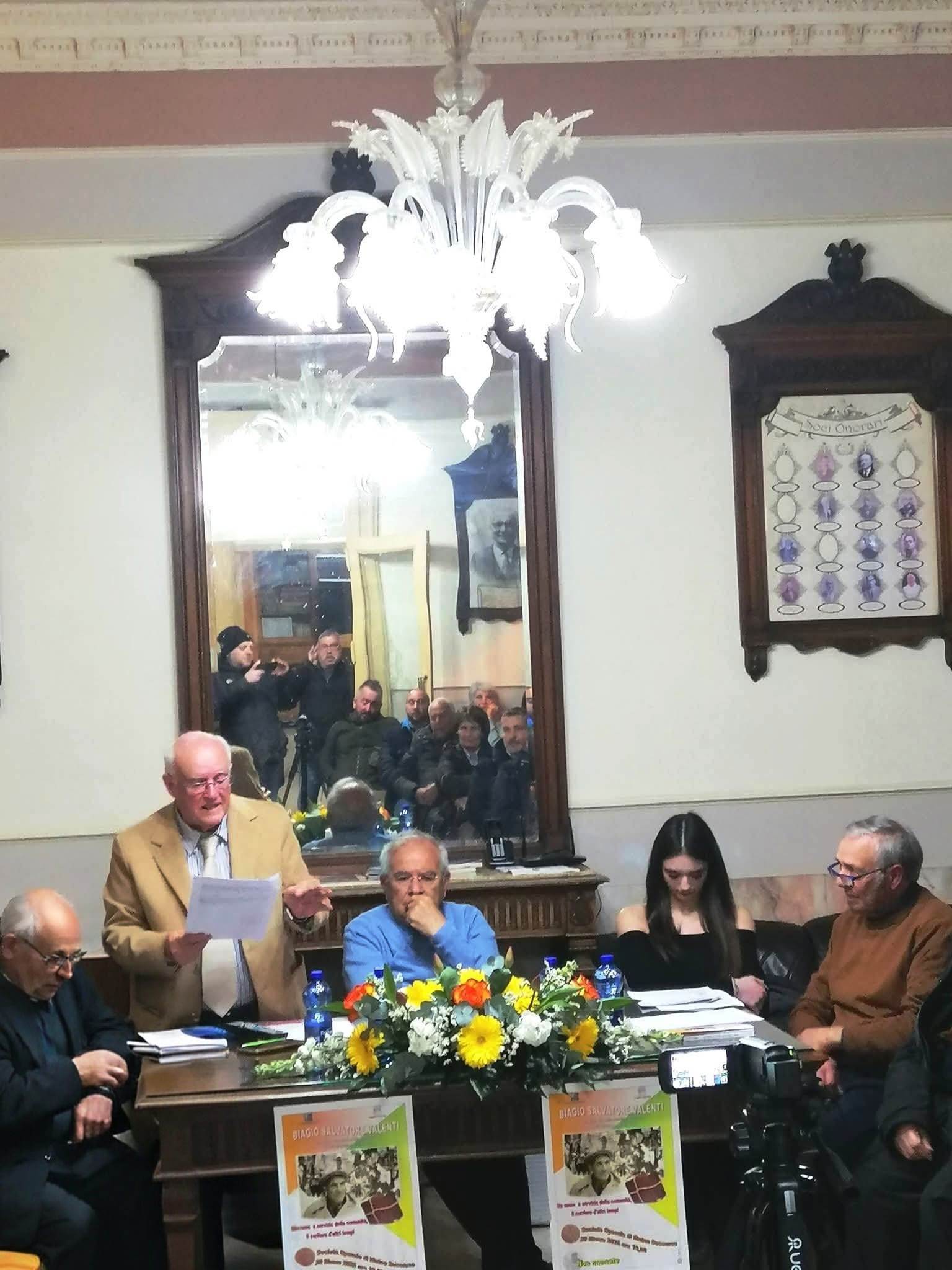 A quarantasette anni dalla sua scomparsa, Don Biagio Valenti è tornato tra noi attraverso le parole, gli aneddoti, i ricordi di una vita ricca di umanità e simpatia. Per noi ricordarlo è stato un dovere; speriamo che per tutti voi sia stato anche un autentico piacere. È stata una serata all’insegna della semplicità e dei sorrisi. Io, Ninè Maniaci, la relatrice Sofia Cannata, ci siamo sentiti in famiglia: il contatto diretto con i numerosi partecipanti irradiava affetto e una partecipazione viva e sincera. A rendere la serata ancora più significativa è stata la presenza del Sindaco, Dott. Sebastiano Sanzarello, dell’Assessore Massimiliano Melidone, di Mons. Michele Giordano e del Presidente della Società Operaia, Geom. Mario Lutri, che ringraziamo per la calorosa ospitalità. Un grazie speciale, infine, al pubblico numeroso, la cui partecipazione ha riempito i nostri cuori di gioia. Ha condotto egregiamente il Prof. Giuseppe Ciccia.